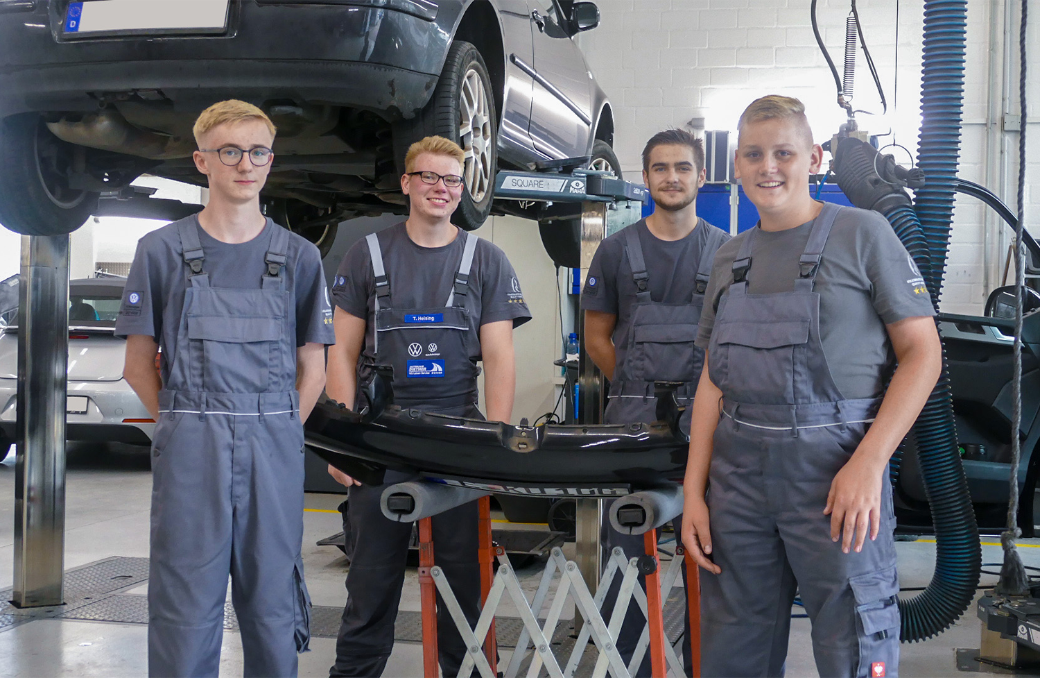 Zuerst Praktikum, dann Ausbildung. So läuft das bei uns schon lange und wir fahren gut damit. Lukas Franke, Tino Heising, Robin Pamp und Maximilian Meurer haben es auch so gemacht und gehören seit August fest zu unserem Werkstatt-Team. Herzlich willkommen und viel Erfolg bei Eurer Ausbildung zum Kfz-Mechatroniker mit Schwerpunkt System- und Hochvolttechnik sowie Karosseriebauer.