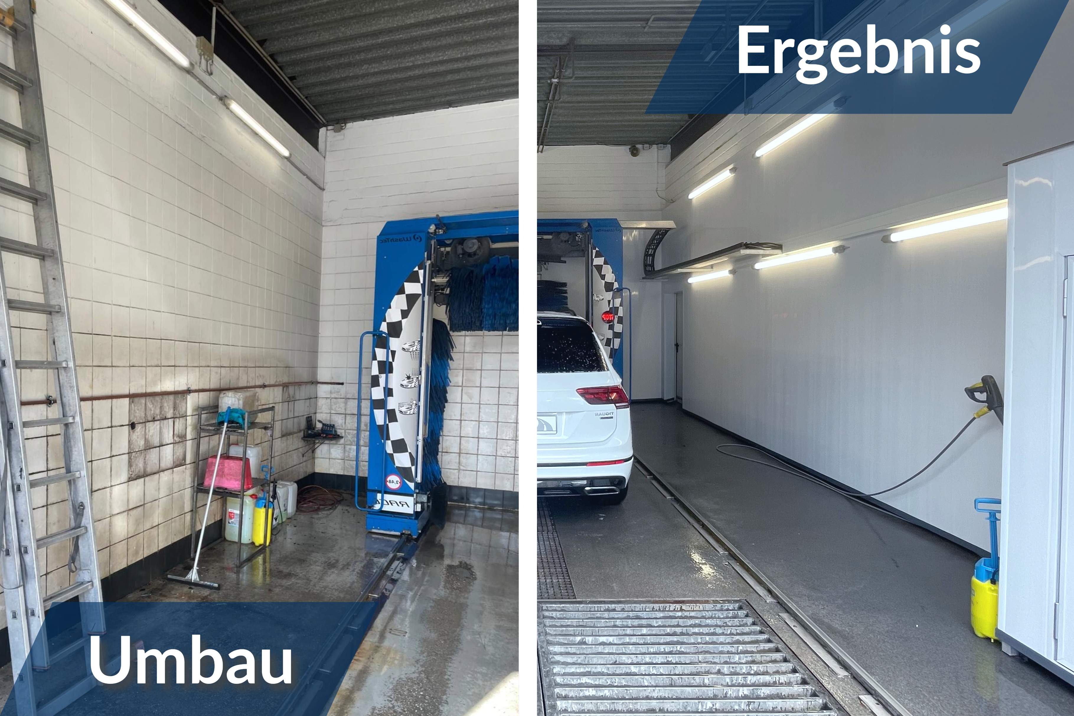 Streichen hätte hier wohl nicht mehr geholfen. Endlich glänzt sie wieder. Jens und Jun sind auf jeden Fall erfreut über ihr neus Arbeitsplatz-Makeover. Wir finden es ist richtig schön geworden … für eine Waschhalle.