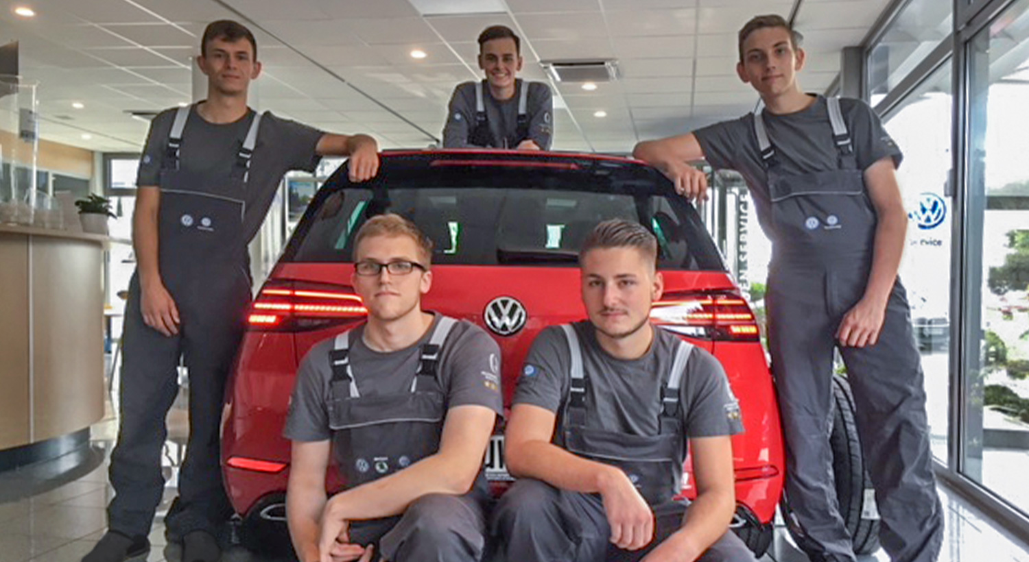 Unser Azubi-Quintett 2018 ist komplett: Wir können in diesem Jahr drei Auszubildende im Bereich KFZ-Mechatroniker mit Schwerpunkt System- und Hochvolttechnik sowie zwei Auszubildende im Bereich Karosseriebau in unseren Reihen begrüßen und zeigen damit einmal mehr, dass unser Familienunternehmen kräftig in die Zukunft investiert und sich für Nachwuchs im Handwerk einsetzt. Die Neuen haben sich bereits gut eingelebt, sind super motiviert und loben den Teamgeist, der bei uns selbstverständlich ist. Wer uns kennen lernen möchte, kann gerne ein Schnupperpraktikum bei uns machen. Sprecht uns einfach an, das neue Ausbildungsjahr kommt bestimmt! Emails bitte an: